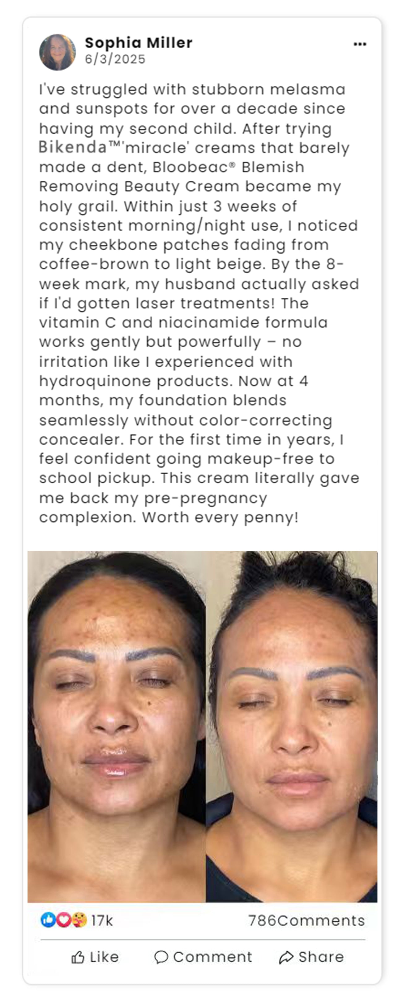 For over 5 years, our elite team of board-certified dermatologists, PhD chemists, and cellular biologists meticulously engineered Bikenda™ Blemish Removing Beauty Cream to set a new standard in skincare. Led by Dr. Emily Hartman, MD (Harvard-trained dermatologist with 20+ years in pigment research), we conducted: